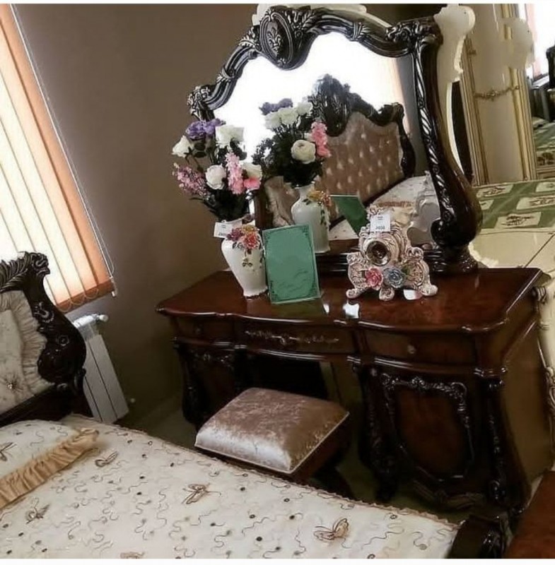 Продаётся спальний Белорусский гарнитур. Комплект включает кровать без матраса, прикроватные тумбы,пуф,туалетный столик с зеркалом, шкаф пятидверный, вместительный.