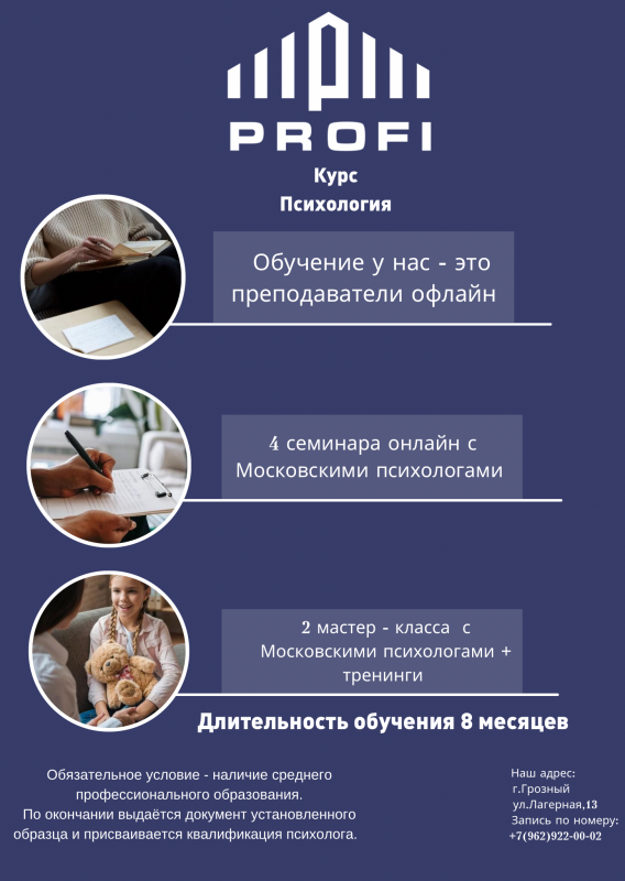 В учебном центре «Профи» ведётся набор на курсы до 10 ноября на «Младшая медицинская сестра» «Фармация(онлайн)», «Массаж», «Эстетическая-Косметология», «Психология, Логопедия, Нутрициология (онлайн)» @profi.groznyy